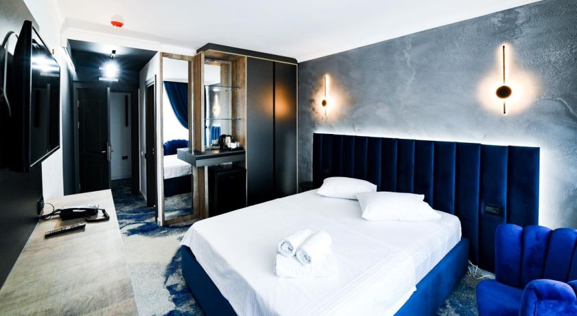 Aer condiţionat, Baie cu duş, Halat de baie, Papuci de casă, Uscător de păr, Televiziune prin cablu/satelit, Minibar, Seif, Telefon, Fierbător pentru apă,